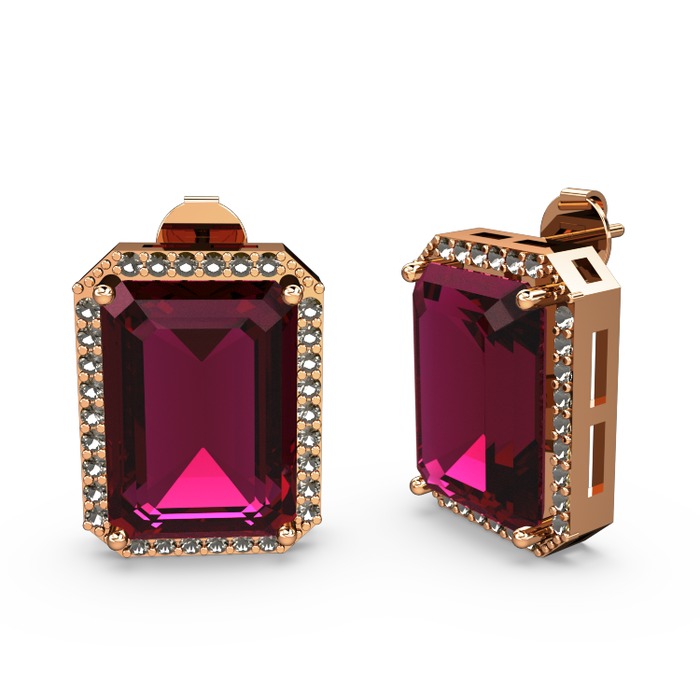 Rodolit garnet ve dumanlı kuvars 8 ayar rose altın küpe
