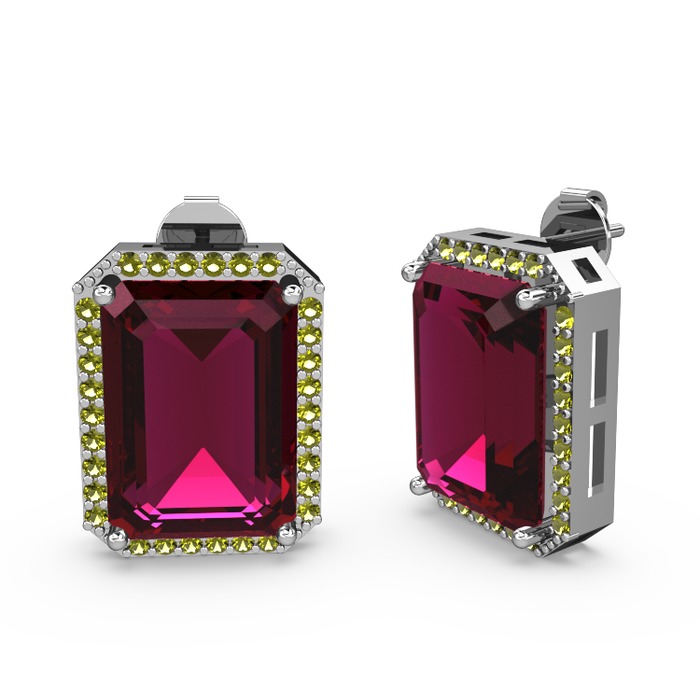 Rodolit garnet ve peridot 8 ayar beyaz altın küpe