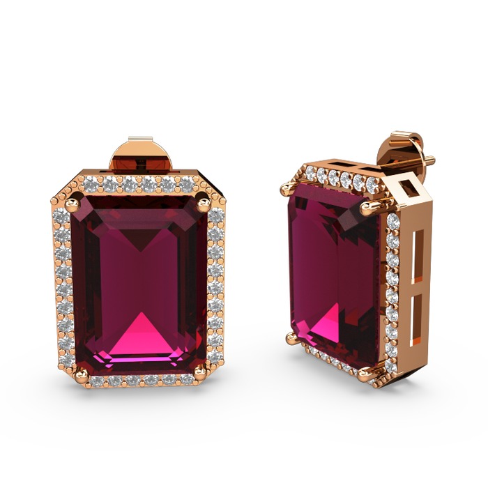 Rodolit garnet ve swarovski 18 ayar rose altın küpe