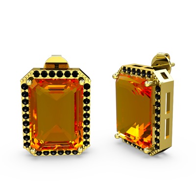 Sitrin ve siyah zirkon 8 ayar altın küpe