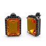 Sitrin ve siyah zirkon 925 ayar siyah rodyum kaplama gümüş küpe