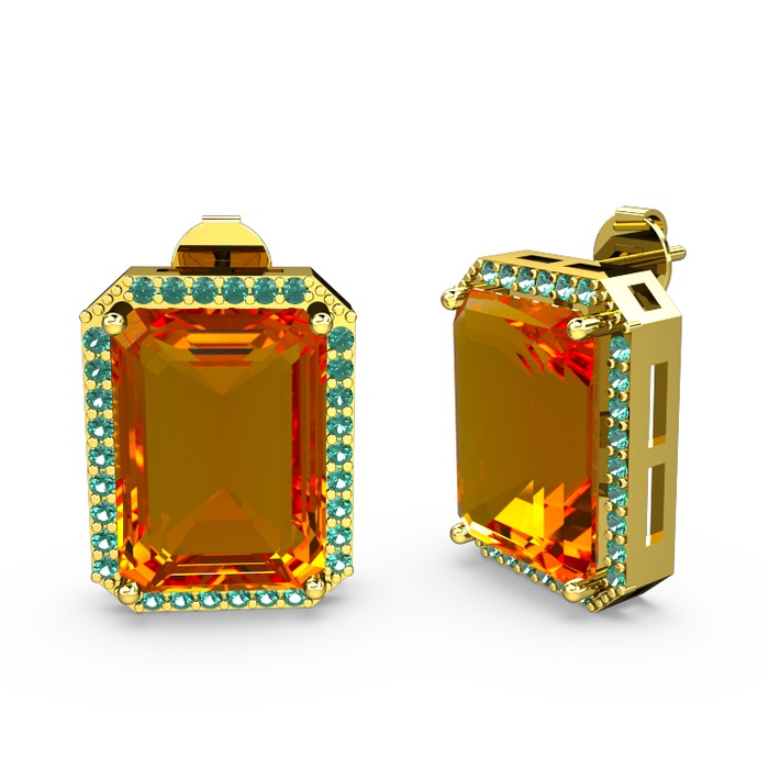 Sitrin ve yeşil kuvars 925 ayar altın kaplama gümüş küpe