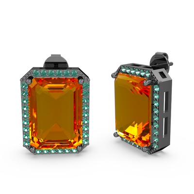 Sitrin ve yeşil kuvars 925 ayar siyah rodyum kaplama gümüş küpe