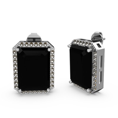 Siyah zirkon ve dumanlı kuvars 18 ayar beyaz altın küpe