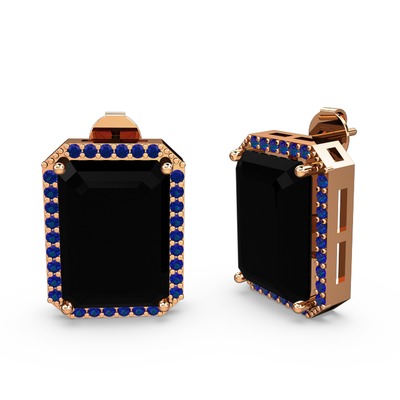 Siyah zirkon ve lab safir 925 ayar rose altın kaplama gümüş küpe