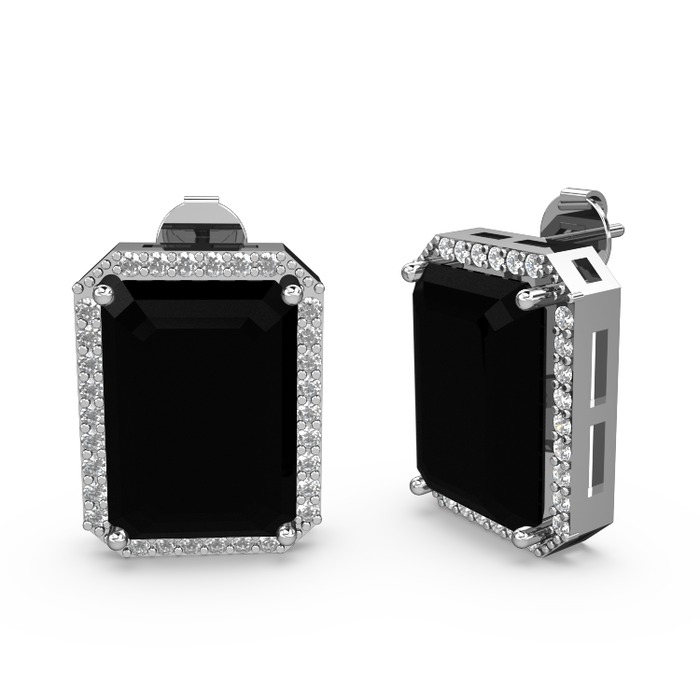 Siyah zirkon ve swarovski 18 ayar beyaz altın küpe