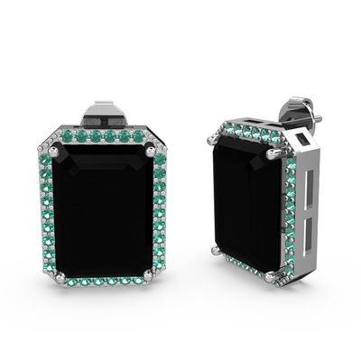 Siyah zirkon ve yeşil kuvars 925 ayar gümüş küpe