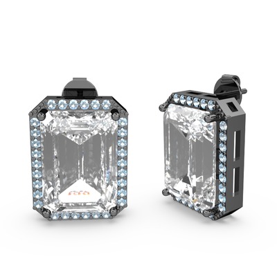 Swarovski ve akuamarin 925 ayar siyah rodyum kaplama gümüş küpe