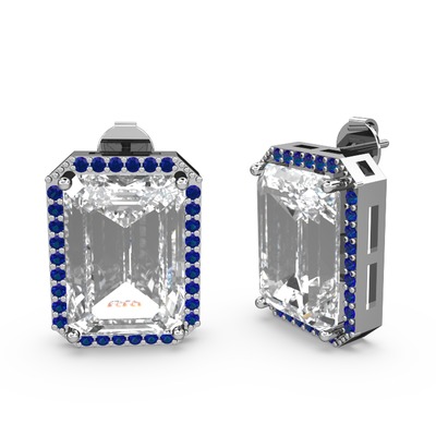 Swarovski ve lab safir 14 ayar beyaz altın küpe