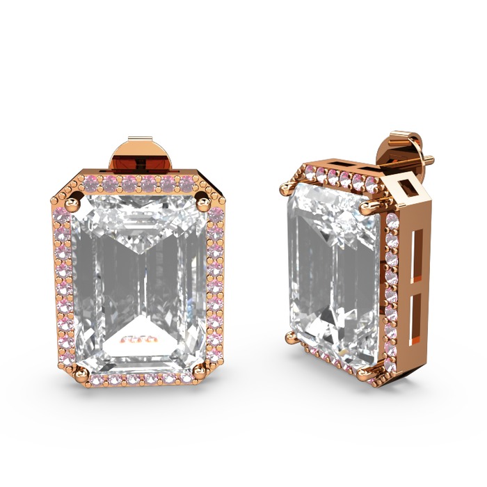 Swarovski ve pembe kuvars 14 ayar rose altın küpe