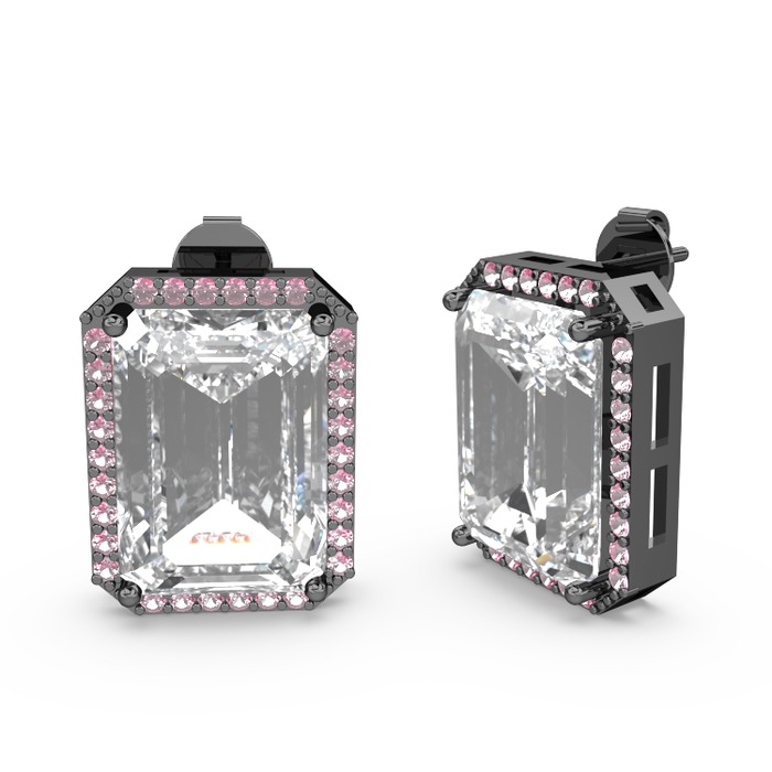 Swarovski ve pembe kuvars 925 ayar siyah rodyum kaplama gümüş küpe