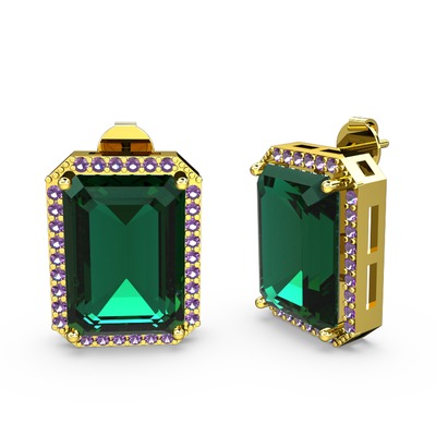 Yeşil kuvars ve ametist 8 ayar altın küpe