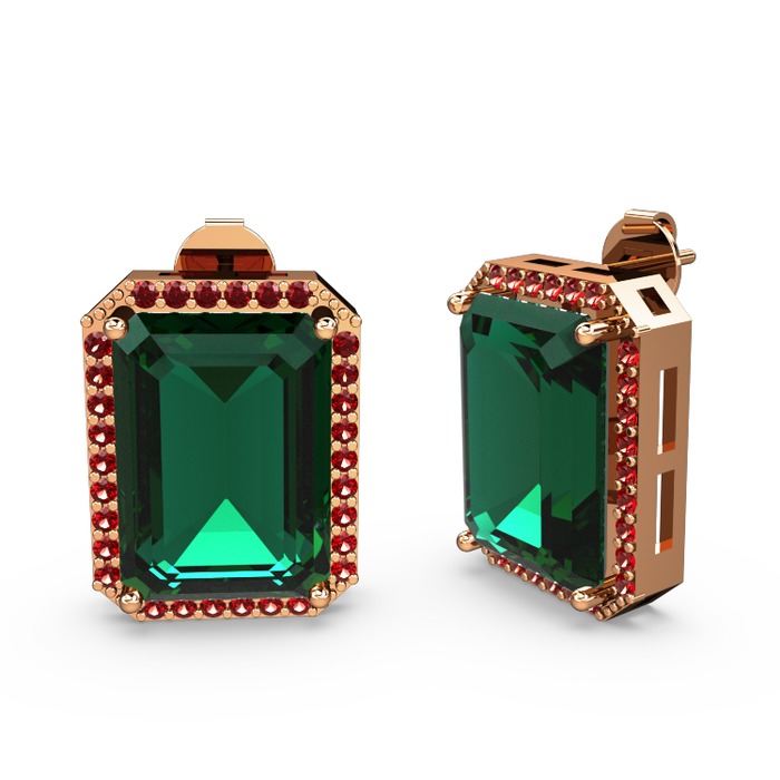 Yeşil kuvars ve garnet 8 ayar rose altın küpe