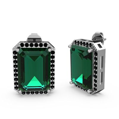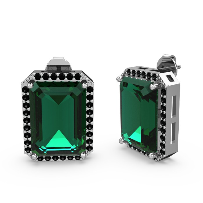 Yeşil kuvars ve siyah zirkon 14 ayar beyaz altın küpe