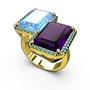 Akuamarin, ametist ve yeşil kuvars 14 ayar altın yüzük