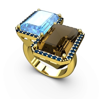 Akuamarin, dumanlı kuvars ve lab safir 8 ayar altın yüzük