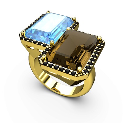 Akuamarin, dumanlı kuvars ve siyah zirkon 8 ayar altın yüzük