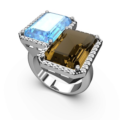 Akuamarin, dumanlı kuvars ve swarovski 18 ayar beyaz altın yüzük