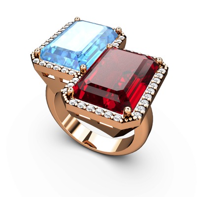 Akuamarin, garnet ve swarovski 18 ayar rose altın yüzük