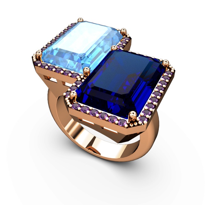 Akuamarin, lab safir ve ametist 18 ayar rose altın yüzük