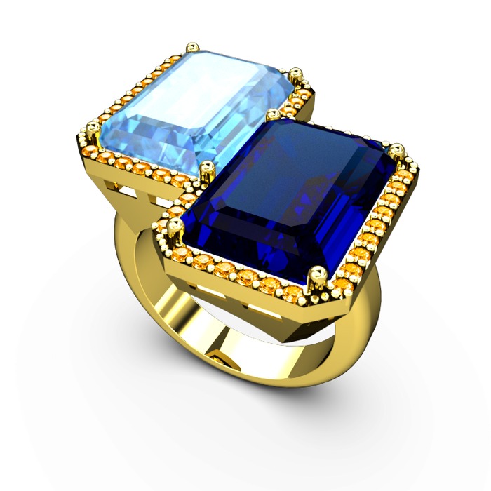 Akuamarin, lab safir ve sitrin 8 ayar altın yüzük