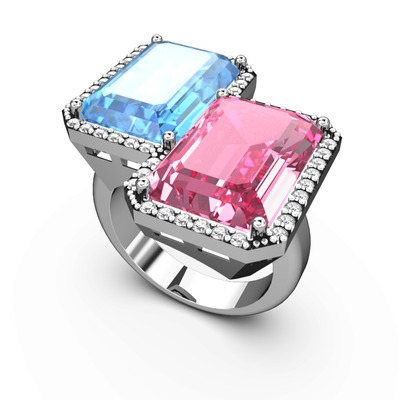 Akuamarin, pembe kuvars ve swarovski 14 ayar beyaz altın yüzük