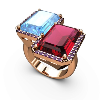 Akuamarin, rodolit garnet ve ametist 925 ayar rose altın kaplama gümüş yüzük