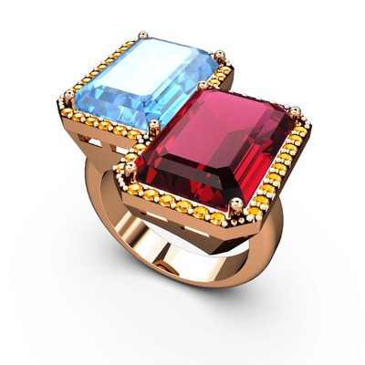 Akuamarin, rodolit garnet ve sitrin 14 ayar rose altın yüzük