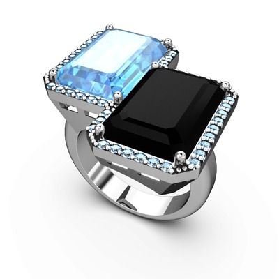 Akuamarin ve siyah zirkon 925 ayar gümüş yüzük