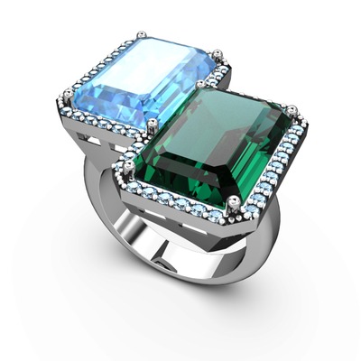 Akuamarin ve yeşil kuvars 18 ayar beyaz altın yüzük