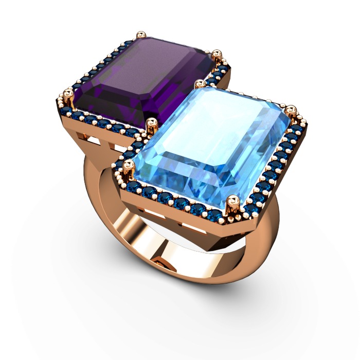 Ametist, akuamarin ve lab safir 14 ayar rose altın yüzük