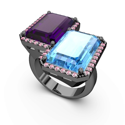 Ametist, akuamarin ve pembe kuvars 925 ayar siyah rodyum kaplama gümüş yüzük