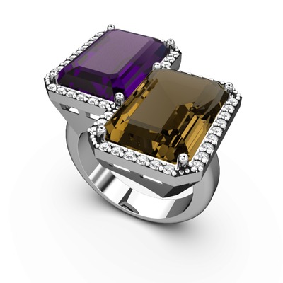 Ametist, dumanlı kuvars ve swarovski 925 ayar gümüş yüzük