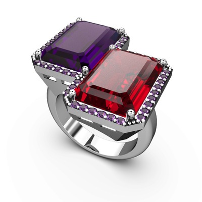 Ametist ve garnet 925 ayar gümüş yüzük