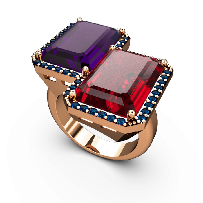 Ametist, garnet ve lab safir 14 ayar rose altın yüzük