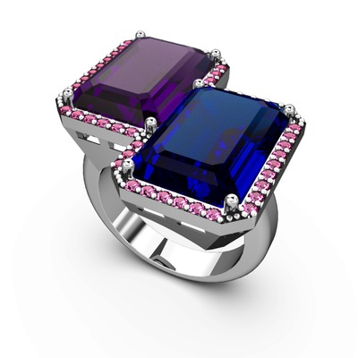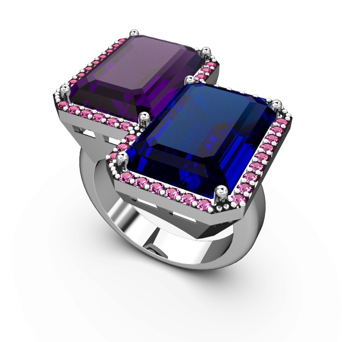Ametist, lab safir ve rodolit garnet 14 ayar beyaz altın yüzük