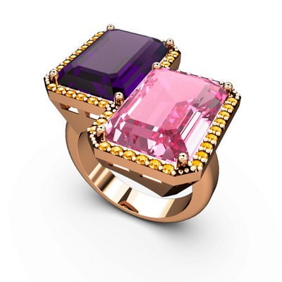Ametist, pembe kuvars ve sitrin 14 ayar rose altın yüzük
