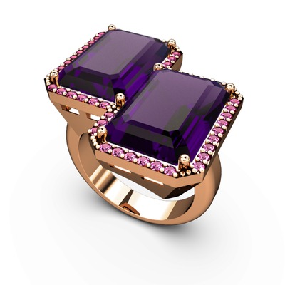 Ametist ve rodolit garnet 18 ayar rose altın yüzük
