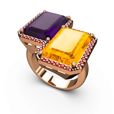 Ametist, sitrin ve garnet 925 ayar rose altın kaplama gümüş yüzük