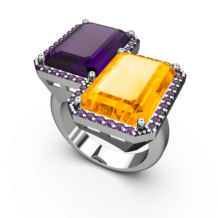 Ametist ve sitrin 925 ayar gümüş yüzük