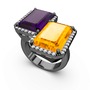 Ametist, sitrin ve swarovski 925 ayar siyah rodyum kaplama gümüş yüzük