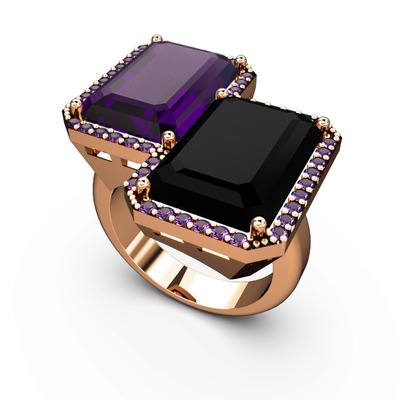 Ametist ve siyah zirkon 14 ayar rose altın yüzük
