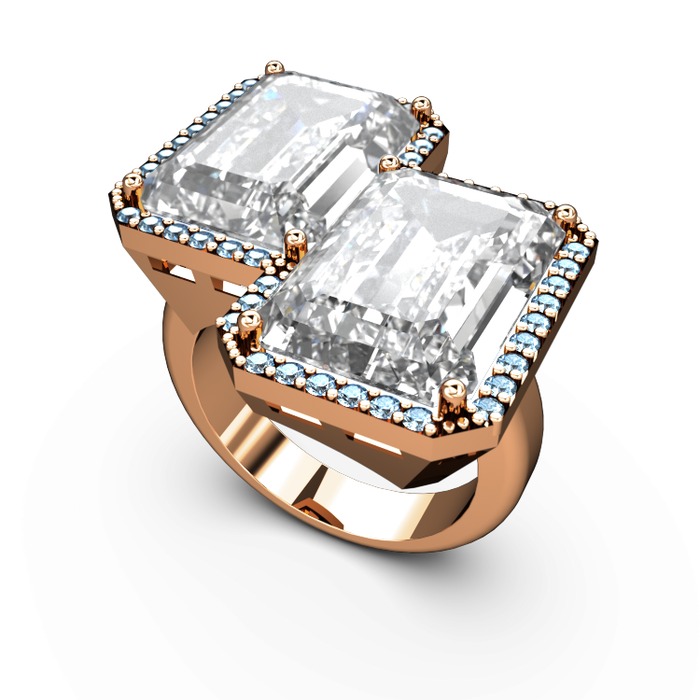 Beyaz zirkon ve akuamarin 14 ayar rose altın yüzük