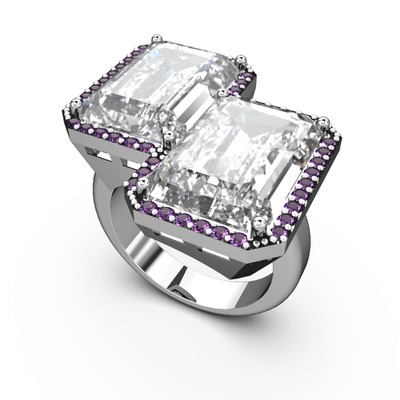 Beyaz zirkon ve ametist 8 ayar beyaz altın yüzük