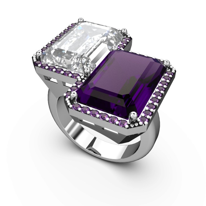 Beyaz zirkon ve ametist 8 ayar beyaz altın yüzük