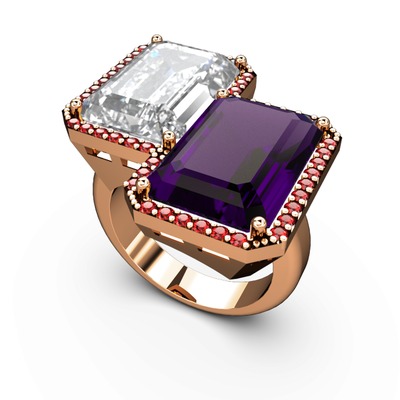 Beyaz zirkon, ametist ve garnet 925 ayar rose altın kaplama gümüş yüzük