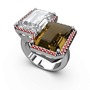 Beyaz zirkon, dumanlı kuvars ve garnet 18 ayar beyaz altın yüzük