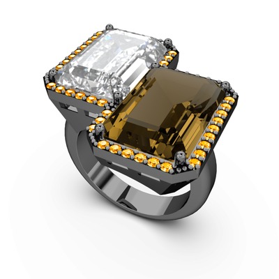 Beyaz zirkon, dumanlı kuvars ve sitrin 925 ayar siyah rodyum kaplama gümüş yüzük