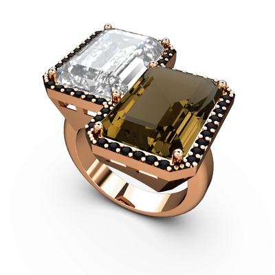 Beyaz zirkon, dumanlı kuvars ve siyah zirkon 8 ayar rose altın yüzük