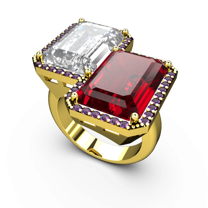Beyaz zirkon, garnet ve ametist 18 ayar altın yüzük